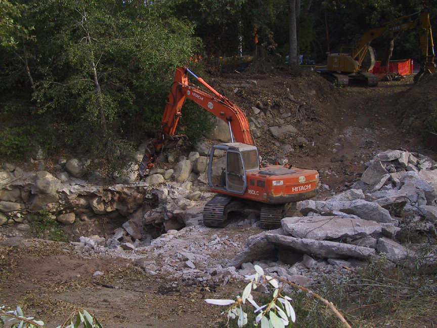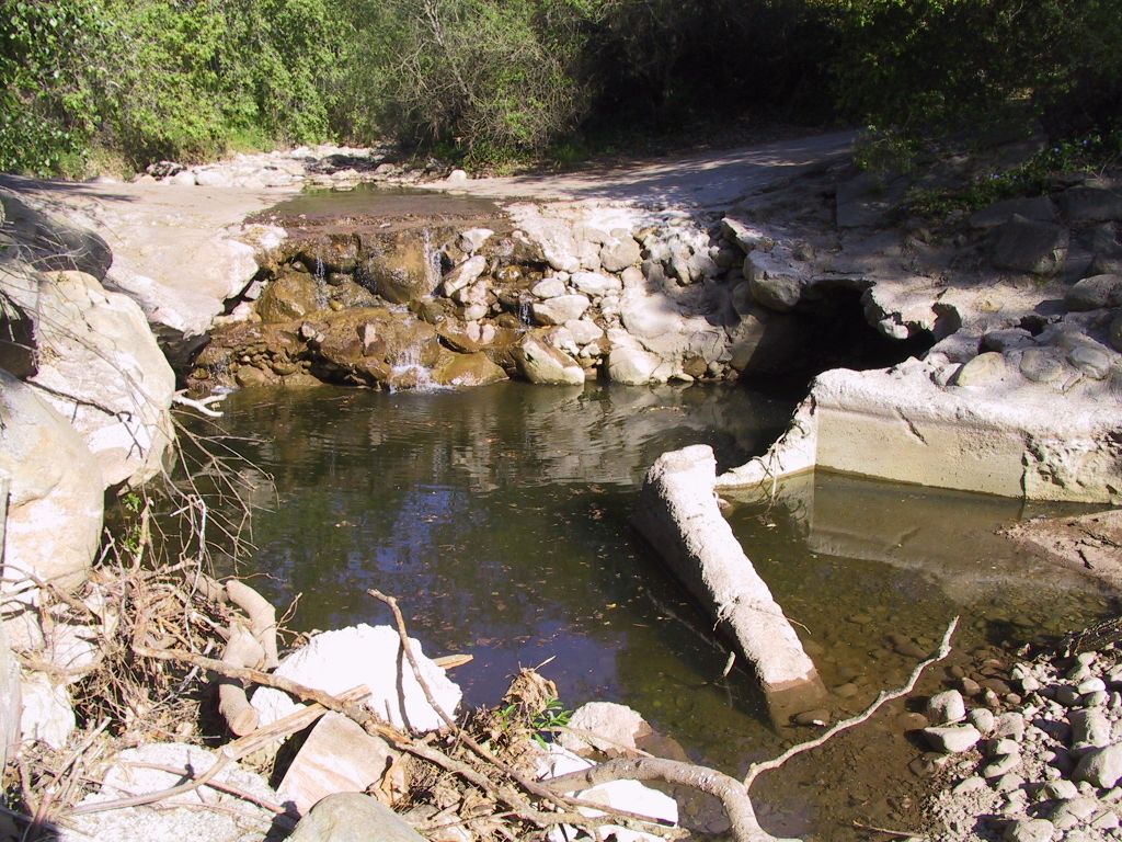 The construction phase of the project began in August of 2008 and finished that December. After the removal of the low flow crossing the channel was regraded and a series of three deep rock boulders key ways were installed to help stabilize the channel and prevent future barrier formation. Following construction the site was re-vegetated with native container stock, willow and sycamore stakes as well as native seed. The project was highly successful at restoring steelhead migration through this portion of the creek.